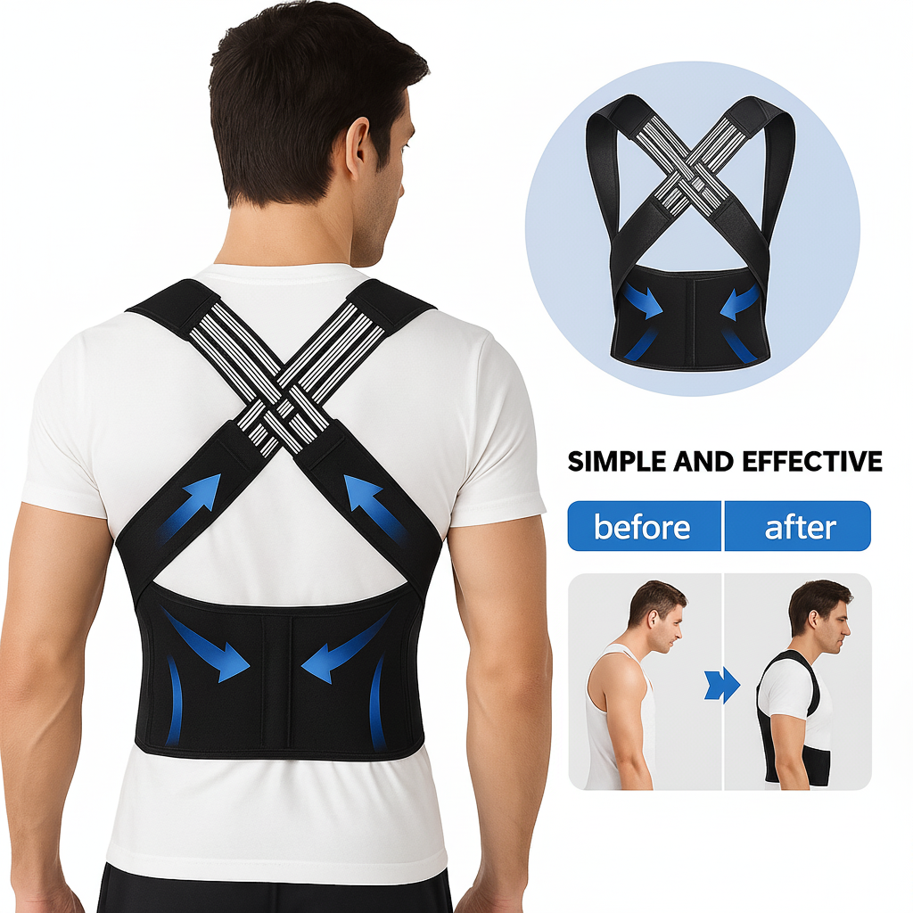 ⭐ Provides stable upper-back correction with a firm, comfortable X-shaped support system. ✨